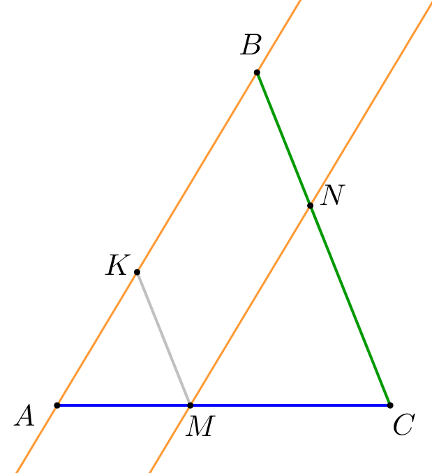 Прямые \(\displaystyle BC\) и \(\displaystyle KM\) параллельны.