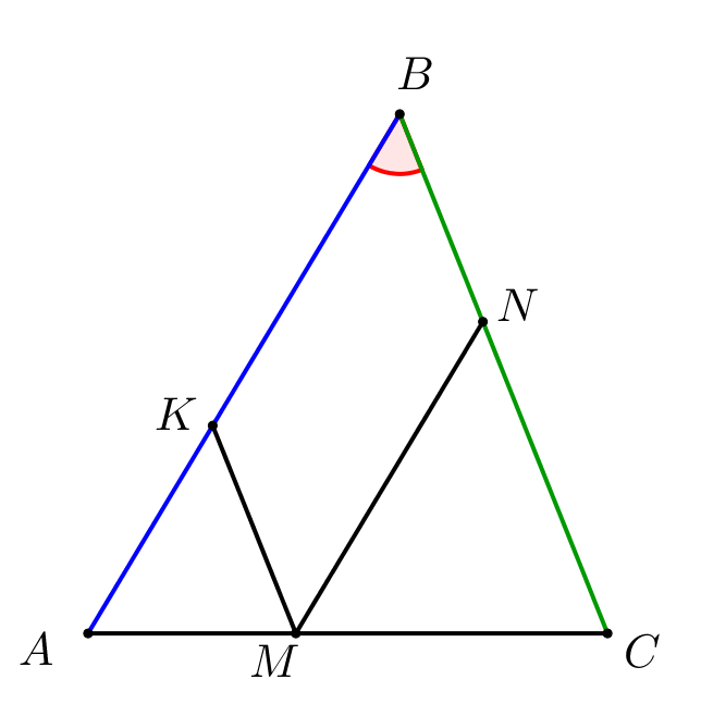 \(\displaystyle \frac{S_{ABC}}{S_{KBNM}}=\frac{\frac{1}{2}AB\cdot BC \cdot \cancel{\sin\angle ABC}}{KB\cdot BN \cdot \cancel{\sin\angle KBN}}=\frac{1}{2}\cdot\frac{5}{3}\cdot\frac{5}{2}=\frac{25}{12}\small.\)