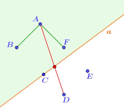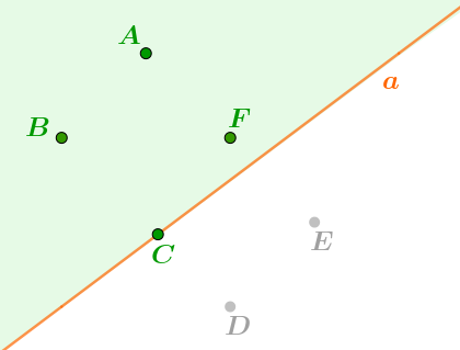 Две точки принадлежат одной и той же полуплоскости с границей \(\displaystyle a\) тогда и только тогда, когда они лежат по одну сторону от прямой \(\displaystyle a{\small .}\)