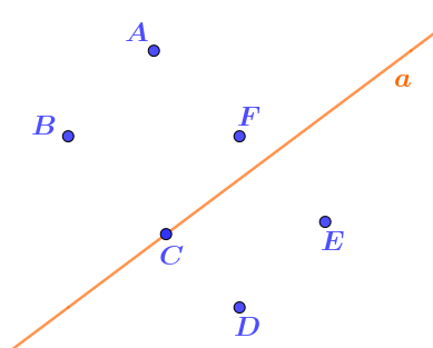 На рисунке проведена прямая \(\displaystyle a{\small ,}\) которая проходит через точку \(\displaystyle C{\small ,}\) и отмечено несколько точек.