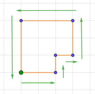 Двигаясь против часовой стрелки по контуру многоугольника, сосчитаем клетки вдоль каждой из сторон, пока не вернёмся в исходнрую вершину: