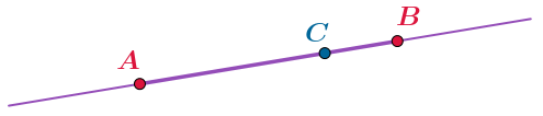 Если точка \(\displaystyle C\) лежит между двумя точками \(\displaystyle A\) и \(\displaystyle B{\small ,}\) то расстояния между этими точками удовлетворяют равенству: