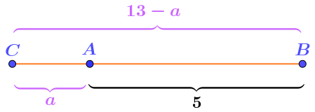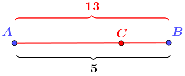 В противном случае длина отрезка \(\displaystyle AB\) была бы равна сумме расстояний от точки \(\displaystyle C\) до точек \(\displaystyle A\) и \(\displaystyle B{ \small ,}\) то есть тринадцати.