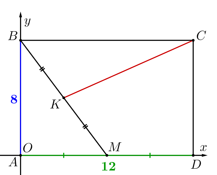 Координаты точек: \(\displaystyle C(12;\,8)\) и \(\displaystyle K\left(3;\,4\right)\small,\) тогда