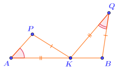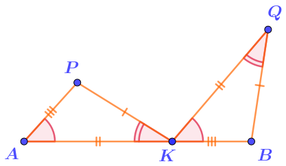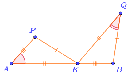 - расстояния от точки \(\displaystyle K\) до точек \(\displaystyle A\) и \(\displaystyle P\) соответственно равны расстояниям от точки \(\displaystyle Q\) до точек \(\displaystyle K\) и \(\displaystyle B{\text ;}\)