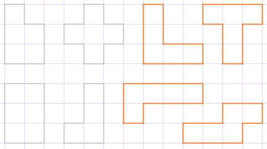 Пытаемся разбить оставшуюся часть исходной фигуры на две части, равные размещённой.
