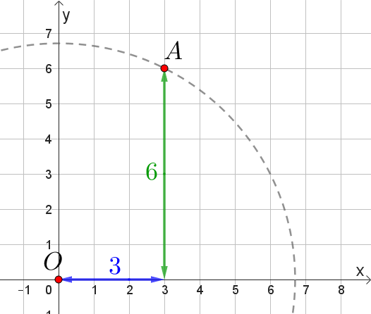 \(\displaystyle OA^2=3^2+6^2=45\small,\)