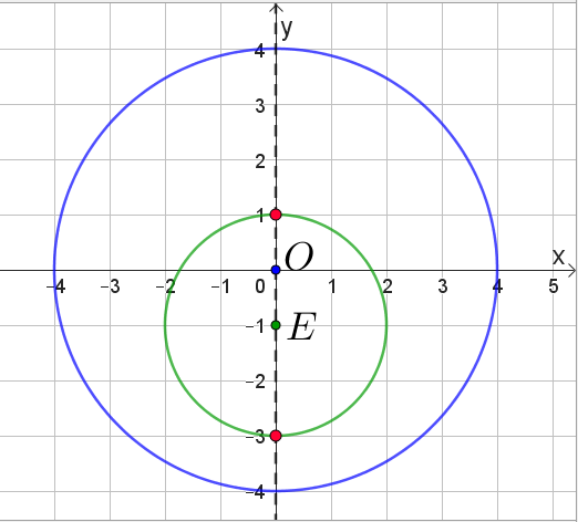 \(\displaystyle x^2+(y+1)^2=4\) и \(\displaystyle x^2+y^2=16\small.\)