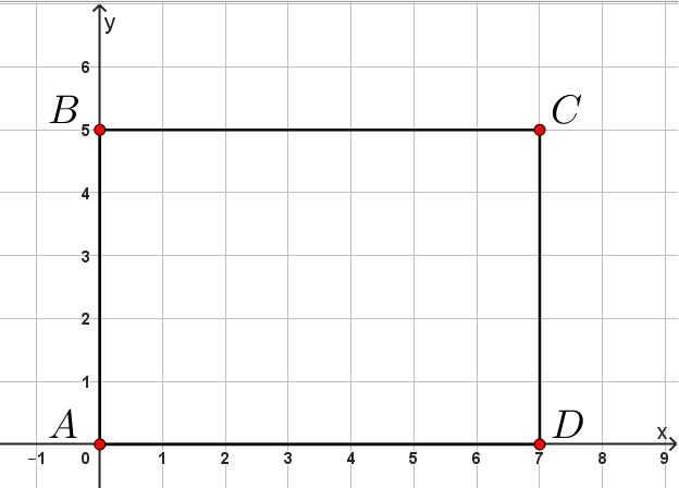 Тогда координаты точек: \(\displaystyle A(0;\,0),\,B(0;\,5),\,C(7;\,5),\,D(7;\,0)\small.\)