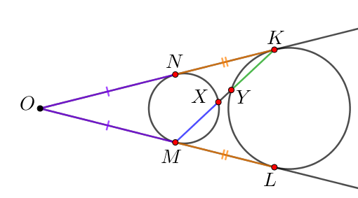 \(\displaystyle ON=OM\) и \(\displaystyle OK=OL\small.\)