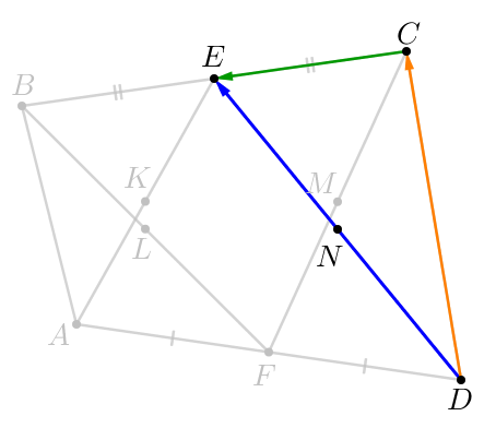 | \(\displaystyle \overrightarrow{LN}=\overrightarrow{LF}-\frac{\overrightarrow{DA}}{2}+\overrightarrow{DN}\small.\) | ![]() |
