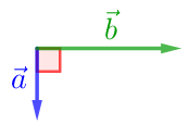 \(\displaystyle \vec{a}\cdot\vec{b}=|\overrightarrow {a}| \cdot |\overrightarrow {b}|\cdot \cos ( \widehat{\overrightarrow {a},\overrightarrow {b}})=|\overrightarrow {a}| \cdot |\overrightarrow {b}|\cdot\cos90^{\circ}=|\overrightarrow {a}| \cdot |\overrightarrow {b}|\cdot0=0\small.\)