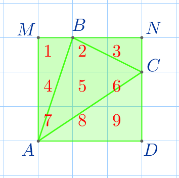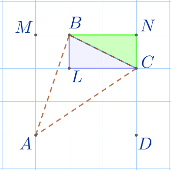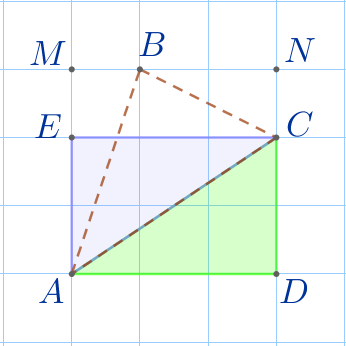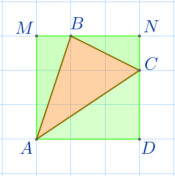 Через вершины треугольника \(\displaystyle ABC\) по линиям сетки вокруг данного треугольника опишем квадрат \(\displaystyle AMND{\small.}\)