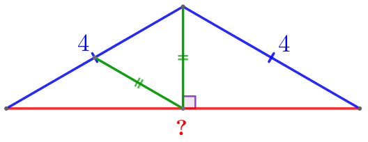Найдите основание равнобедренного треугольника, если его боковая сторона равна \(\displaystyle 4\small,\) а высота, опущенная на основание, равна отрезку, соединяющему середину основания с серединой боковой стороны.