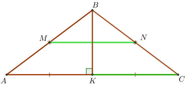 По условию отрезок \(\displaystyle MN\) соединяет середины боковых сторон треугольника \(\displaystyle ABC {\small.}\)