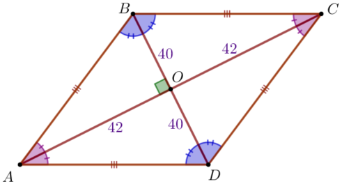 Пусть \(\displaystyle ABCD\) – параллелограмм с диагоналями \(\displaystyle AC=84\) и \(\displaystyle BD=80 {\small,}\) \(\displaystyle \\ O\) – точка пересечения диагоналей.