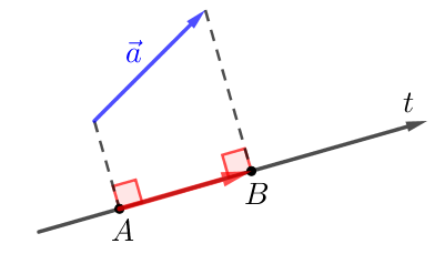 Если вектор \(\displaystyle \overrightarrow{AB}\) и ось \(\displaystyle t\) сонаправлены, то проекцией \(\displaystyle \vec{a}\) на ось \(\displaystyle t\) называется