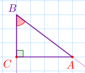 ![]() | На стороне \(\displaystyle BL\) угла \(\displaystyle PBL\) найдем точку, лежащую в узле квадратной сетки. Обозначим эту точку буквой \(\displaystyle A{\small.}\) Из точки \(\displaystyle A\) по линии сетки проведём перпендикуляр к стороне \(\displaystyle BP{\small.}\) Точку пересечения этого перпендикуляра и луча \(\displaystyle BP\) обозначим буквой \(\displaystyle C{\small.}\) Получили прямоугольный треугольник \(\displaystyle ABC{\small.}\) Катеты этого треугольника составляют целое количество клеток. |