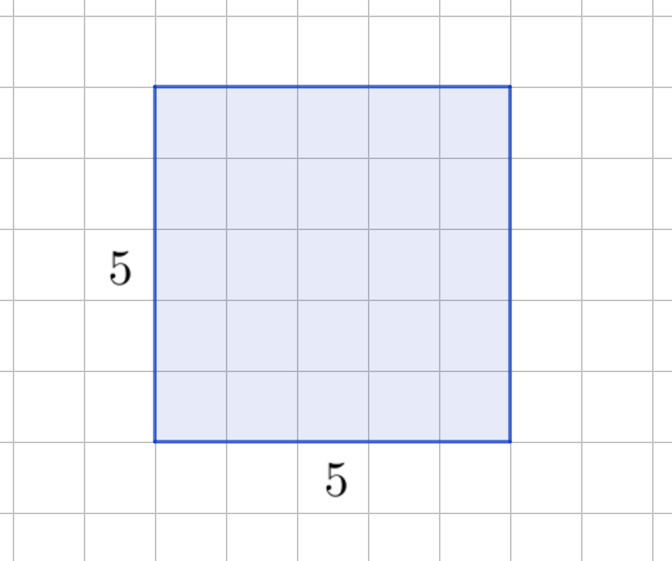На рисунке изображён квадрат со стороной \(\displaystyle 5\) единиц: