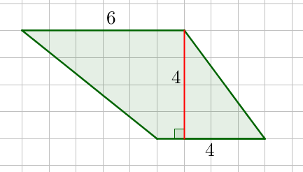 Следовательно, площадь данной трапеции равна \(\displaystyle \\ \) \(\displaystyle \frac{6+4}{2}\cdot 4=20{\small .}\) |
