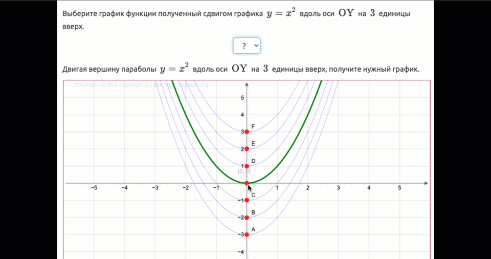 Выберите график функции, полученный сдвигом графика \(\displaystyle y=x^2\) вдоль оси \(\displaystyle {\rm OY}\) на \(\displaystyle 3\) единицы вверх.