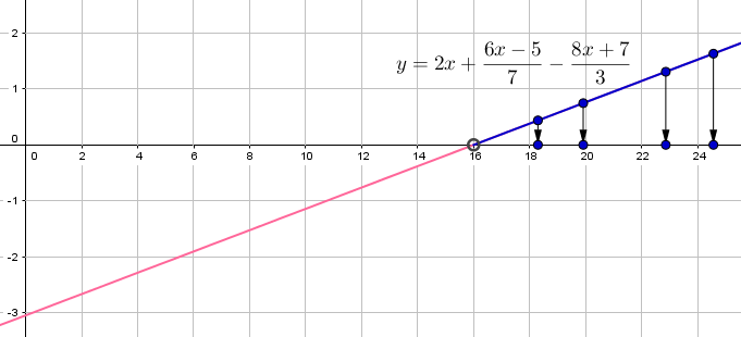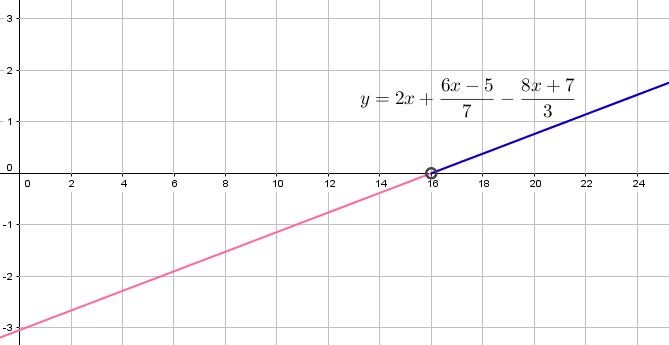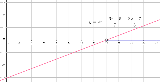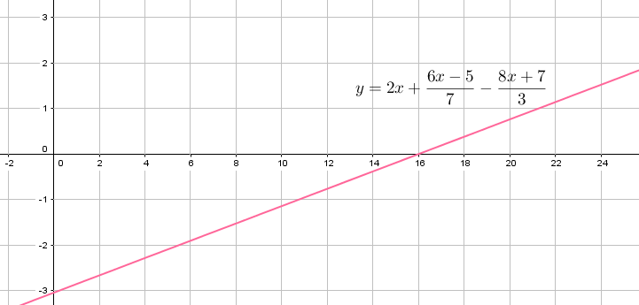Нам известен график линейной функции \(\displaystyle y=2x+\frac{6x-5}{7}-\frac{8x+7}{3}{\small .}\)