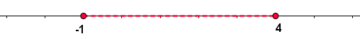 То есть это все точки между \(\displaystyle -1 \) и \(\displaystyle 4{\small ,}\) а также сами точки \(\displaystyle -1 \) и \(\displaystyle 4{\small :}\)