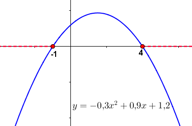 Известен график квадратичной функции \(\displaystyle y=-0{,}3x^2 +0{,}9x +1{,}2{\small .}\)
