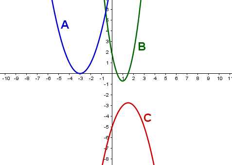 Ось \(\displaystyle \rm OX \) не пересекает только парабола \(\displaystyle \color{red}{\rm С}{\small .} \)