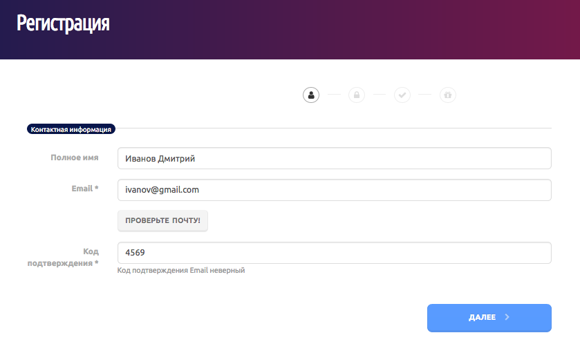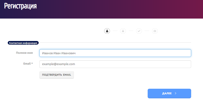 Введите свои ФИО (желательно полностью, хотя это по желанию) и адрес вашей электронной почты.